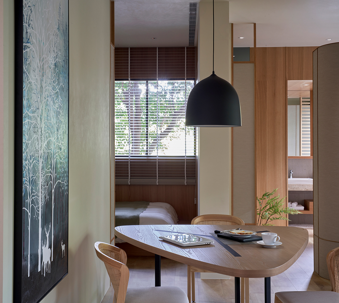清新溫暖的原木風,將設計理念融入到現代設計中,簡潔自然、空寂同時又透露出空間的樸實。治愈而充满空靈之美。