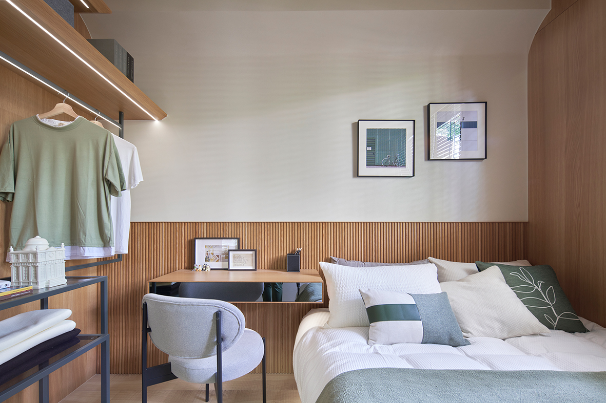 無論是傢俱軟裝還是硬體室內設計,整個家都在溫暖的木色中,仿佛在每日在落日的余暉裡,都能找到家最舒適的感受。
